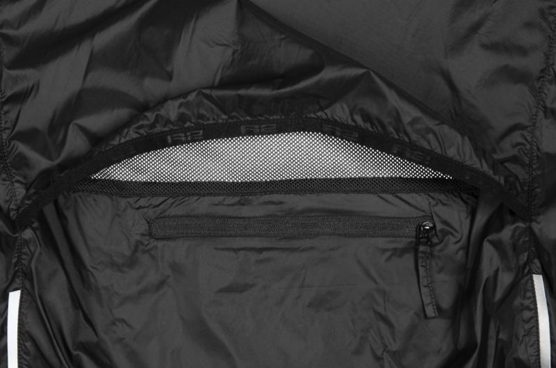 Nastavitelné odvětrání na předním i zadním díle poskytuje pocit komfortu a lze korigovat pomocí zipů. Bundu můžete velmi snadno během několika vteřin sbalit do zadní kapsy. Sbalená bunda se vejde i do zadní kapsy na dresu a můžete ji tak mít u sebe při každé vyjížďce. Když je počasí opravdu nepříjemné, může vám posloužit kapuce, která je schovaná v límci. Díky gumě v lemu kapuce vám perfektně přilne k hlavě. Límec je z vnitřní strany z počesaného materiálu.