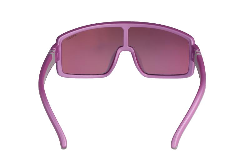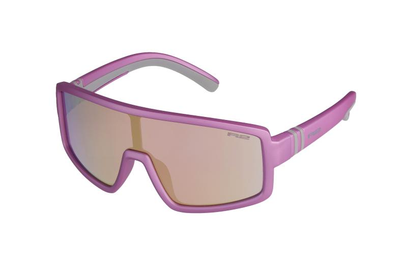 Rám je v metalické, matné fialovorůžové barvě, která působí moderně a hravě zároveň. Čočky mají růžovozlatý chromový povrch, který dodává brýlím stylový vzhled a zároveň snižuje množství světla dopadajícího do očí díky speciální zrcadlové vrstvě. Tato vrstva je odolná vůči otěru a dostupná v různých barevných odstínech duhy.