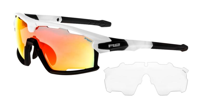 Rám má lesklou bílou barvu, zatímco šedé čočky jsou opatřeny červeno-černou revo povrchovou úpravou, která výrazně snižuje množství pronikajícího světla a zlepšuje vizuální komfort. V balení najdete také náhradní čiré čočky kategorie CAT0, vhodné pro nošení za šera nebo v interiéru.