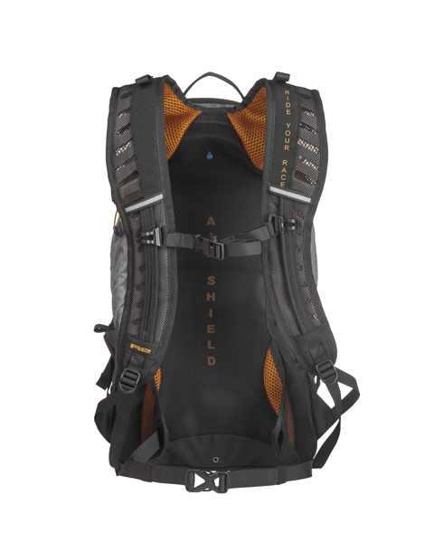Díky zádovému ventilačnímu systému Air Shield, který je vyztužen flexibilním rámem a pokryt tvarovanou síťovinou, si udržíte komfort i při intenzivním pohybu. Anatomicky tvarované ramenní popruhy s plynulou regulací a použitím perforované pěny v exponovaných partiích zvyšují odvětrání a snižují váhu, což přispívá ke komfortu nošení.