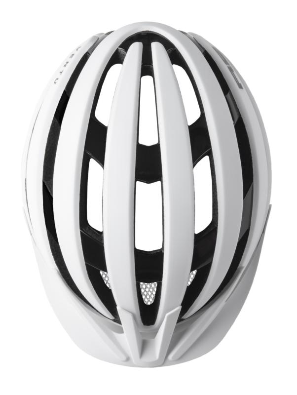 Design modelu VENTU je na první pohled inspirovaný špičkovými závodními přilbami. Vrcholné spojení aerodynamiky, revoluční ventilace a dokonalého pohodlí ocení zejména ti, kteří to myslí na kole vážně. Aerodynamicky efektivní tvar vylepšuje charakteristiky, jež mají zásadní vliv na proudění vzduchu kolem přilby. Precizně tvarovaný nízký profil přilby využívá Venturiho efekt, díky čemuž je maximalizovaný přívod vzduchu masivními ventilačními otvory do helmy a minimalizovaný aerodynamický odpor. Nasátý vzduch je vedený skrze přilbu a přispívá k vynikajícímu odvětrání vnitřní části přilby. Bez pohodlí to ale nejde, proto má VENTU plně nastavitelný ergonomický upínací systém, který se optimálně přizpůsobí tvaru a velikosti hlavy a zajistí komfortní a bezpečné usazení přilby na hlavě. Ultra lehká váha přilby je stěžejním parametrem, který obstojí v konkurenci na vysoké úrovni. S touto přilbou budeme prořezávat vzduch ještě trochu rychleji, než jste zvyklí. Jeď svůj závod, RIDE YOUR RACE.