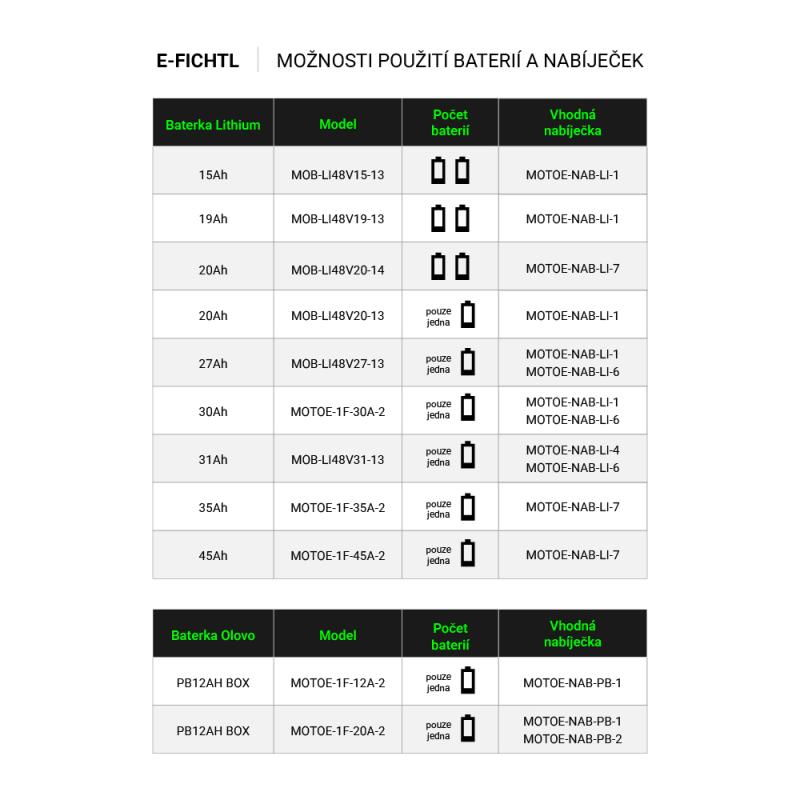 - Baterie napětí: 48 V
