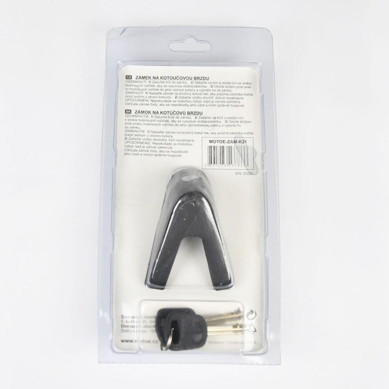 je robustný zámok, ktorým rýchlo imobilizujete a tým aj bezpečne ochránite svoj motocykl, bicykel či kolobežku, pred prípadnou krádežou. Zárukou toho je aj zamykací čap na kotúčovú brzdu, ktorý má priemer 6 mm.