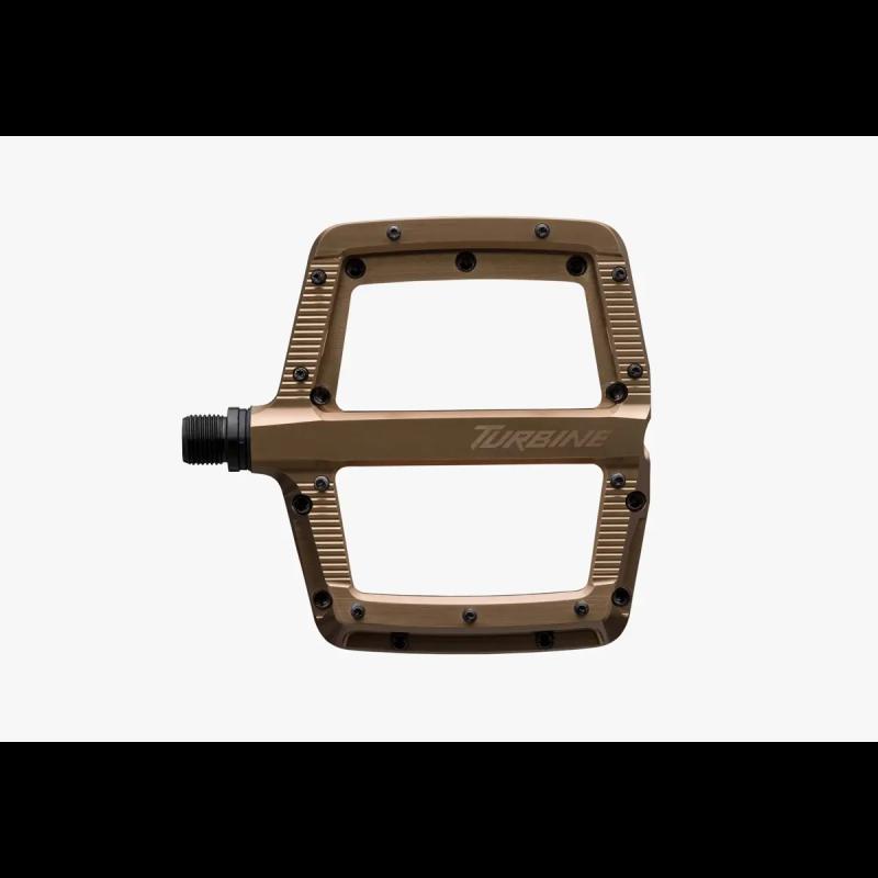 Pedále Race Face Turbine vynikajú precíznym spracovaním, nízkou hmotnosťou a odolnosťou, ktorá obstojí aj v najťažšom teréne.Telo je vyrobené z odolného hliníka 7075-T6 a je kompletne CNC obrábané pre maximálnu pevnosť a minimálnu váhu.