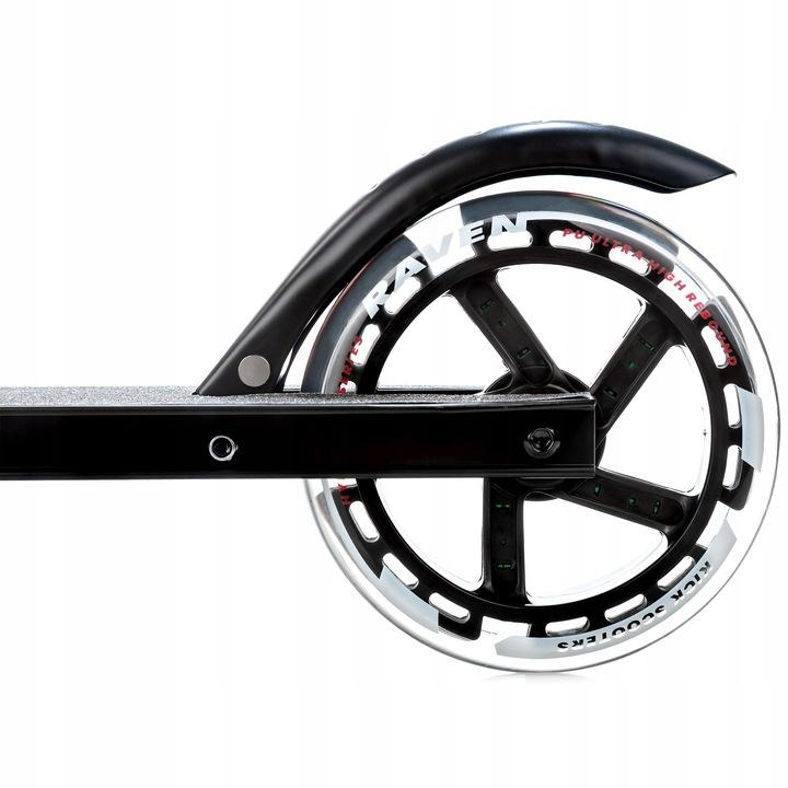 Hmotnosť skútra - čím nižšia váha, tým jednoduchšia jazda, čo je zvlášť dôležité pre deti. Všetky menšie skútre RAVEN s kolieskami o priemere 200 mm vážia len asi 3,5 kg, vďaka čomu aj napriek dodatočne vyztuženej platforme patria medzi najľahšie a najtvrdšie konštrukcie.