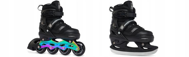 Vyberte si velikost podle potřeby a užijte si všestranné bruslení s jedním párem, který snadno přeměníte z ledních bruslí na inline kolečkové.