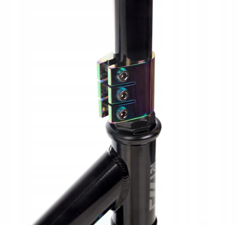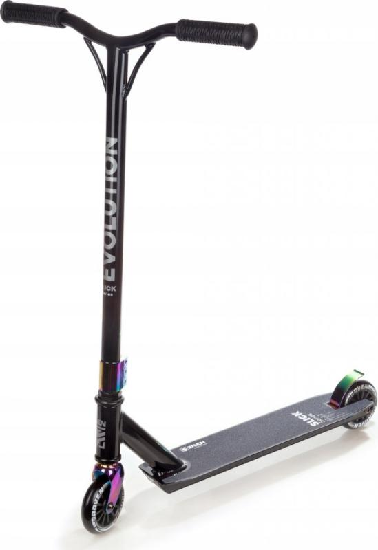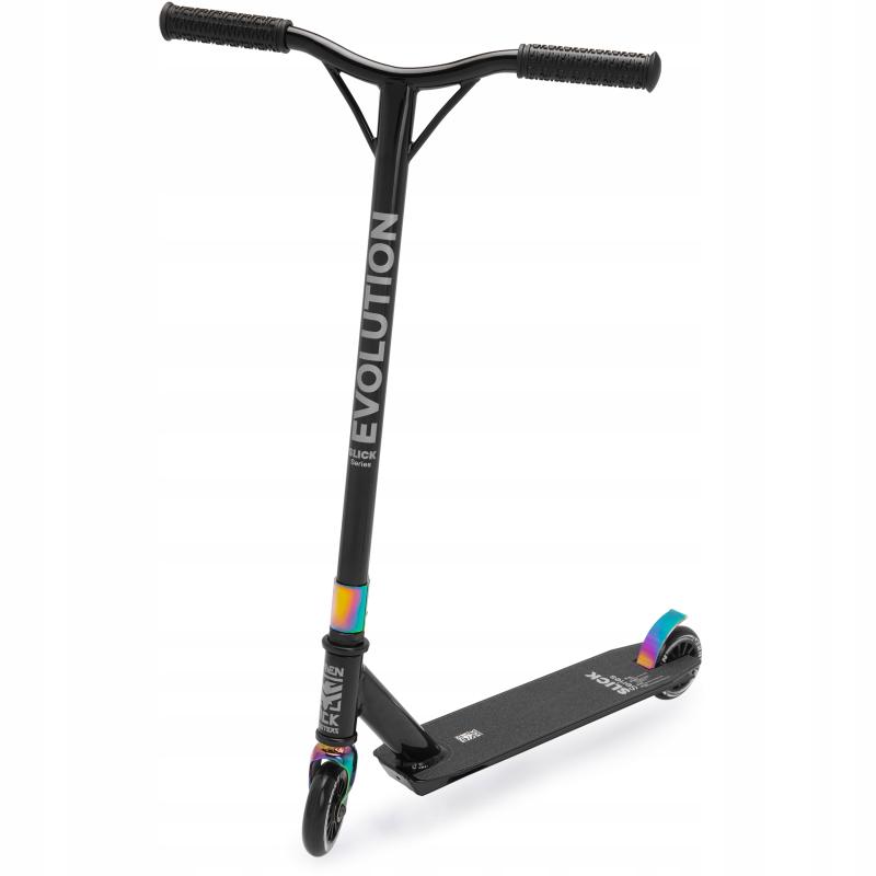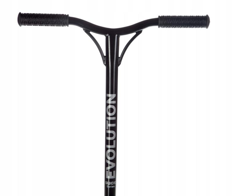 Tato koloběžka je navržena pro náročné jezdce, kteří hledají spolehlivost a odolnost v kombinaci s nízkou hmotností. Řidítka mají tvar Y - 1. stupeň, což znamená extrémní mechanickou odolnost v rámci série Evolution. Jsou vyrobena z prémiové vysoce uhlíkové oceli, která zajišťuje pevnost a zároveň nízkou hmotnost. Rukojeti jsou z nejvyšší řady Ultra Grip, což přináší vynikající přilnavost a pohodlí při ovládání. Parametry řidítek:
