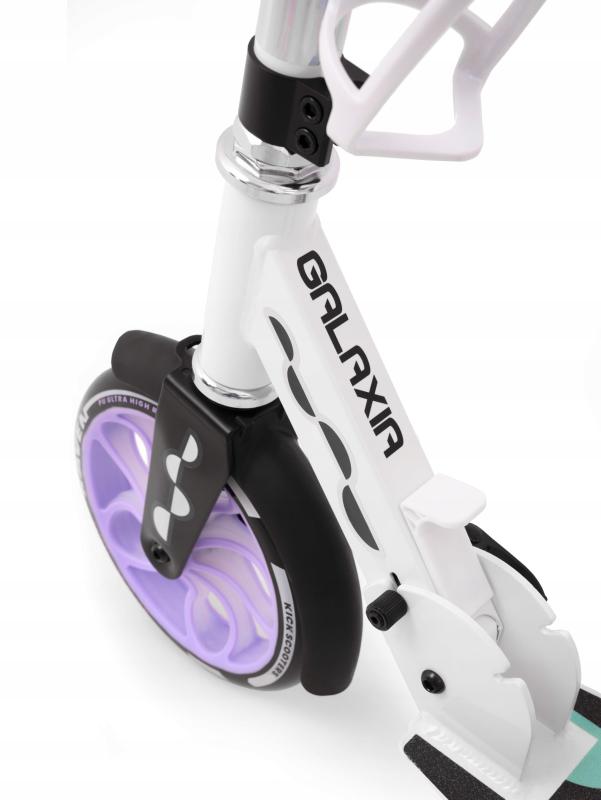 Skladacia kolobežka RAVEN Galaxia Blue/Pink so zvončekom, držiakom na fľašu s vodou, LED kolieskami. 3-stupňové nastavenie výšky riadidiel. Skladacie kolobežky RAVEN s kolesami o priemere 200 mm sa odporúčajú dospelým aj deťom od výšky približne 115 cm (deti od 5 rokov) do výšky 180 cm.
