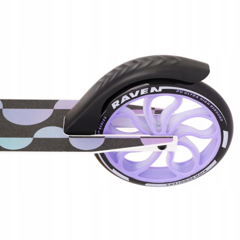 • Hmotnosť skútra - čím nižšia váha, tým jednoduchšia jazda, čo je zvlášť dôležité pre deti. Všetky menšie skútre RAVEN s kolesami o priemere 200 mm vážia len asi 3,5 kg, vďaka čomu napriek dodatočne vystuženej platforme patria medzi najľahšie a najtvrdšie konštrukcie.