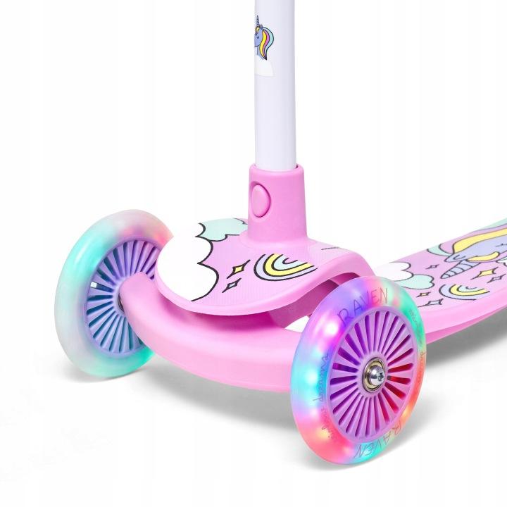Raven Laviana Unicorn s LED koly lila/pink dětská tříkolová koloběžka