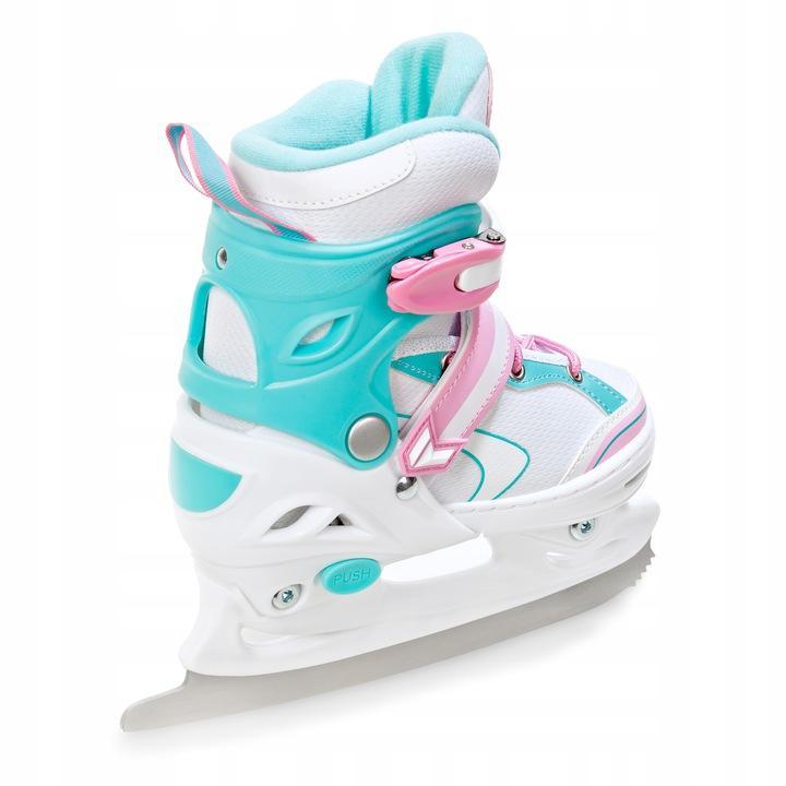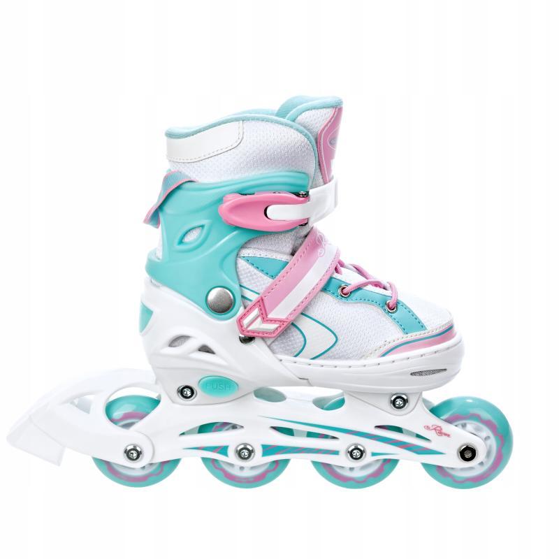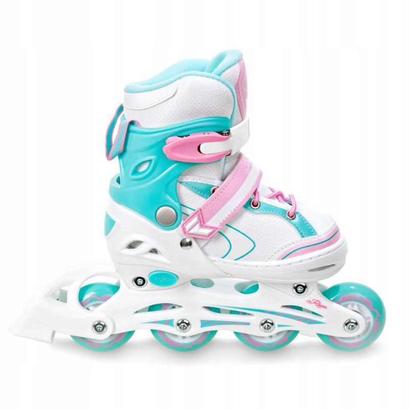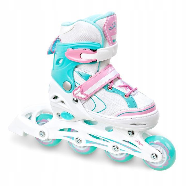 Velikostně nastavitelné (rostoucí) kolečkové dívčí inline brusle. Velikost brusle se nastavuje stisknutím tlačítka nastavovacího mechanismu a vysunutím přední části boty. Balení obsahuje nůž na led, kterým lze zaměnit inline podvozek. Zobrazit celý popis