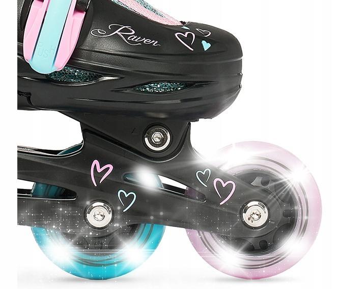 Raven Loret Glitter Black/Mint/Pink dětské kolečkové brusle - LED kolečka POUZE EU 34-37 (VÝPRODEJ)