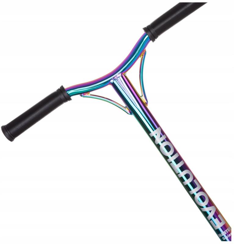 Model Evolution Master Series Neo Chrome predstavuje vyváženú kombináciu ľahkosti, pevnosti a funkčnosti, ktorá umožňuje vykonávať rôzne triky i rýchlu jazdu s istotou a komfortom. Vďaka použitým materiálom a konštrukčným prvkom je kolobežka odolná proti mechanickému namáhaniu a zároveň dostatočne ľahká pre jednoduché ovládanie.