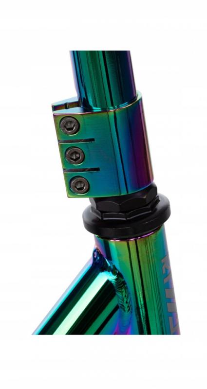 Táto freestyle kolobežka je navrhnutá pre náročných jazdcov, ktorí hľadajú spoľahlivosť a výkon v jednom. Vďaka použitiu veľmi pevného a zároveň ľahkého hliníka HS7000, ktorý sa používa aj v leteckom priemysle, ponúka konštrukcia výnimočnú odolnosť bez zbytočnej váhy.