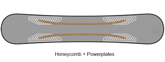 Konstrukce jádra kombinuje Honeycomb a Powder plates, což zajišťuje velmi nízkou váhu a zároveň vysokou pružnost (pop) potřebnou pro skoky. Speciální výztuhy umístěné pod vázáním zvyšují tuhost v kritické oblasti, což vede k lepšímu přenosu síly na hranu, snížení vibrací a lepší kontrole zejména v hlubokém sněhu.