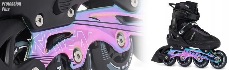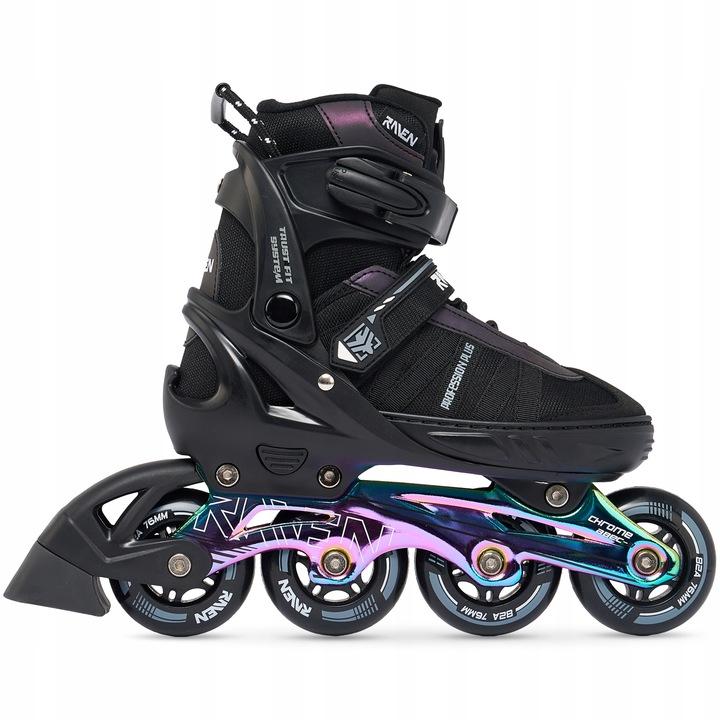 RAVEN Profession PLUS predstavujú spoľahlivé inline korčule, ktoré ľahko prispôsobíte rastúcej nohe dieťaťa. Sú vhodné pre začiatočníkov aj mierne pokročilých korčuliarov vďaka kombinácii pohodlia, pevnej konštrukcie a moderného športového dizajnu v farebnom prevedení Black/Neo Chrome.