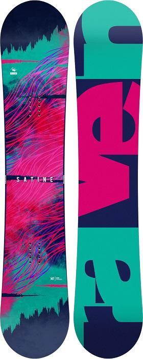 Set produktů za zvýhodněnou cenu. Snowboard Raven Satine je univerzální měkčí prkno na sjezdovku i do parku, které má hybridní rocker profil camout, který umožní snáze zatáčet při nižších rychlostech a odpouští chyby. S