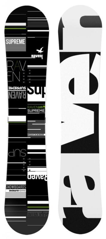 Raven Supreme je freestyle true twin shape snowboard, ktorý je charakterizovaný flatrocker tvarom, tip-to-tail dreveným jadrom z európskeho topolu a extrudovanou sklznicou. Raven Supreme je snowboard, ktorý je určený začínajúcim aj pokročilým jazdcom na jazdu ako na zjazdovkách, tak v parku Snowboard má jadro z mäkšieho topolu a je mäkší, čo oceníte na bedniach pri pressech. Snowboard má sidewallovú konštrukciu, mäkší flex a flatrocker tvar.