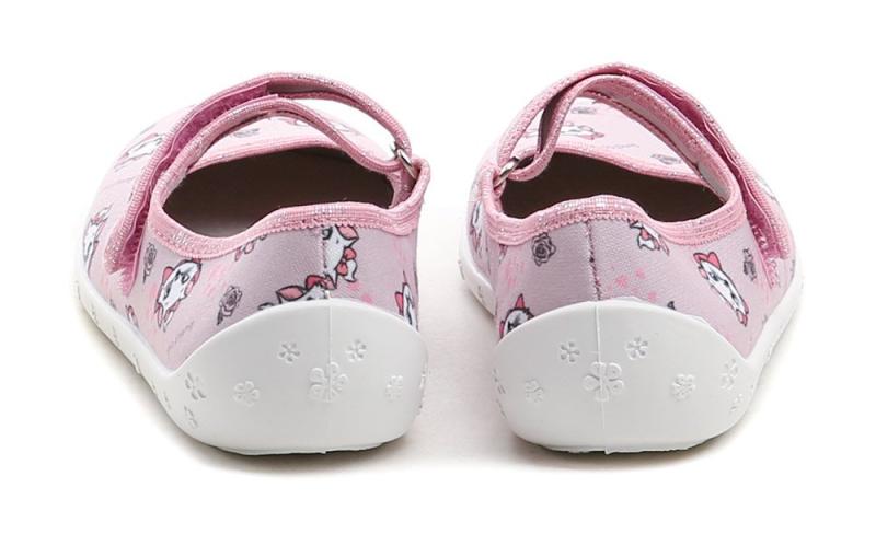 Tyto dívčí baleríny jsou ideální volbou pro letní dny díky svému lehkému a prodyšnému textilnímu materiálu, který zajistí noze dostatek vzduchu a pohodlí. Zapínání na pásek se suchým zipem umožňuje snadné a rychlé obouvání i zouvání, což ocení zejména děti.