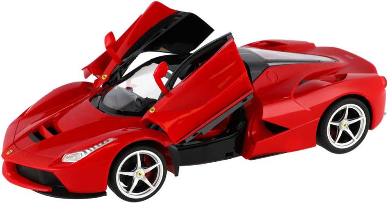 Krásný RC model auta Ferrari Kabriolet v červené barvě s černými prvky. Jedná se o propracovaný model s plastovými doplňky, auto má otevírací dveře. Auto je na dálkové ovládání ve tvaru sportovního volantu a dokáže se pohybovat do čtyř směrů - dopředu, dozadu, doprava a doleva. Tento model má i funkci driftování do zatáčky.
