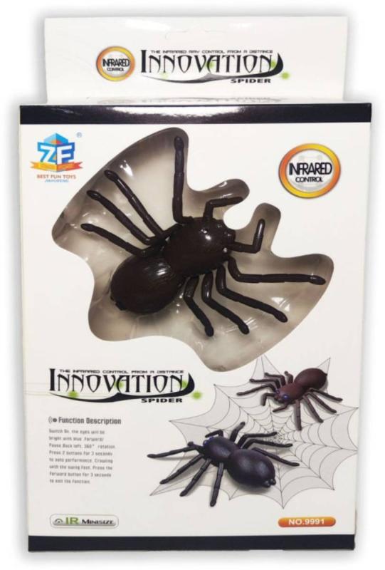 Pavouk na dálkové ovládání pomocí infrared. Balení obsahuje pavouka a ovladač. Pavouk má svítící oči. Jezdí vpřed, vzad, vlevo, vpravo.