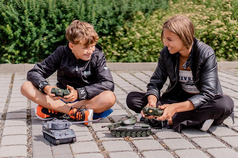 - • Obsah balení: 2 RC tanky, 2 ovladače, 2 akumulátory, nabíječka pro oba akumulátory současně