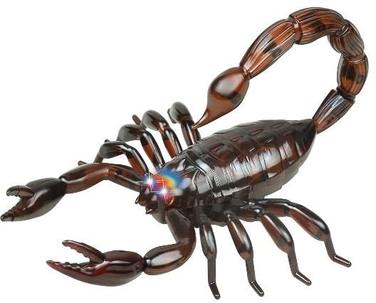 Škorpion na dálkové ovládání pomocí infrared. Balení obsahuje škorpiona a ovladač. Škorpion má svítící oči. Jezdí vpřed, vzad, vlevo, vpravo.