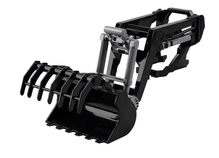 Čelní kombinovaný nakladač lze ručně otevřít, zavřít, spustit a zvednout . Vzadu má traktor i tažné zařízení k zapojení dalších příslušenství. K manipulaci je možné přikoupit klády dřeva.
