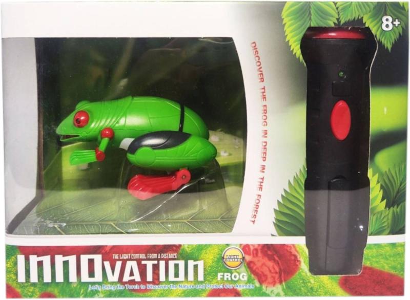 Žába na dálkové ovládání pomocí infrared. Balení obsahuje žábu a baterku. Žába má svítící oči. Jezdí vpřed, dokáže se pohybovat za světlem baterky.