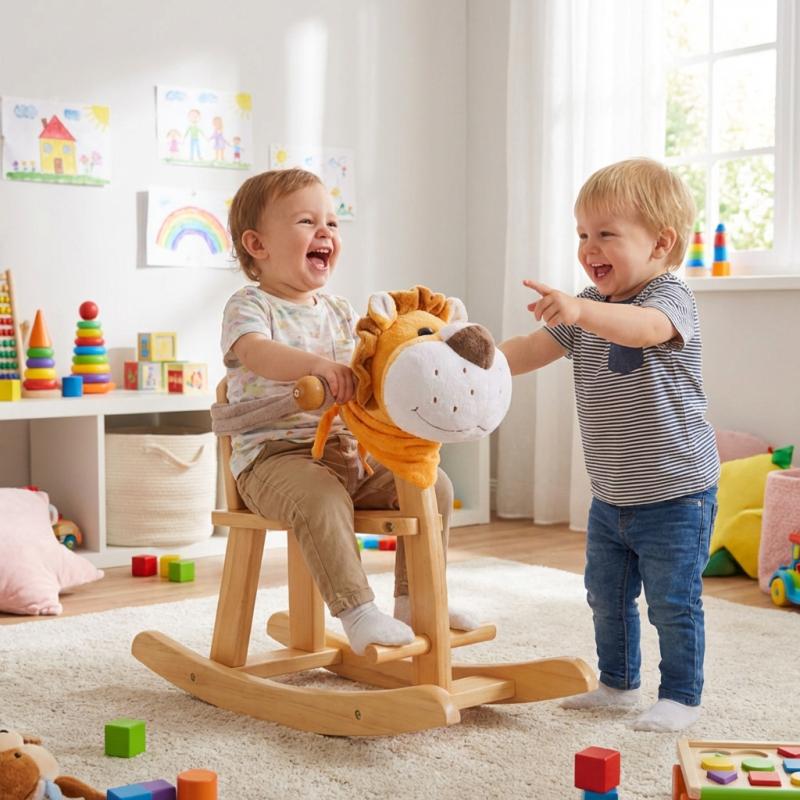 Krásný houpací lvíček s opěradlem a odnímatelným ochranným páskem. Zobrazit celý popis