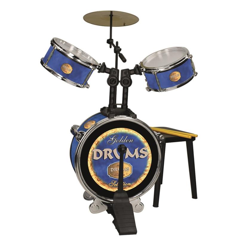 Golden Drums obsahuje vše, co vaše dítě potřebuje k tomu, aby mohlo začít hrát hned po rozbalení. V balení najdete bicí bubny, činely a paličky a židličku – vše pečlivě sladěné a připravené pro první hudební dobrodružství.