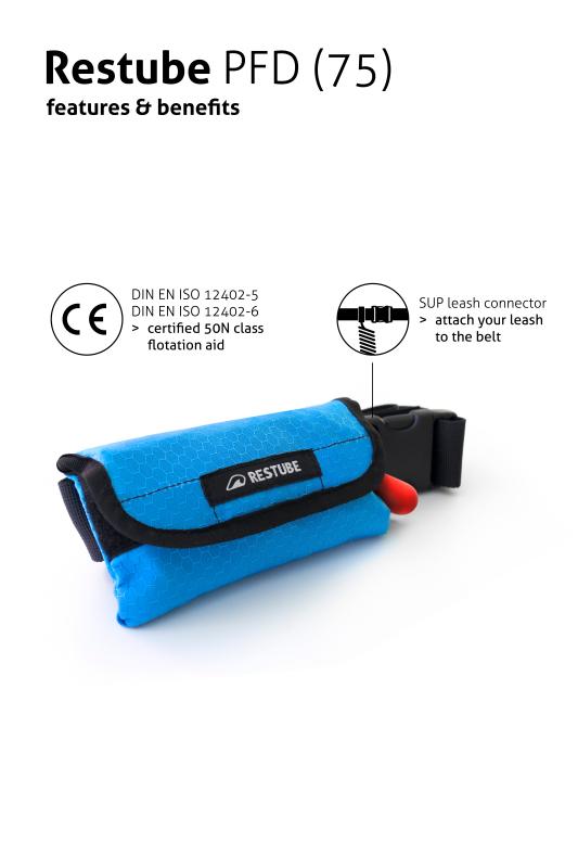 Záchranná pomôcka pre núdzové prípady. Restube PFD má CE certifikát a je vhodný pre hmotnosť užívateľa 40 kg a viac. Systém počas niekoľkých sekúnd nafúkne plavák, ktorý sa pútkom zavesí na krk. Ide vlastne o plávaciu vestu, ktorá je schovaná v kapsičke na opasku. Zobrazit celý popis