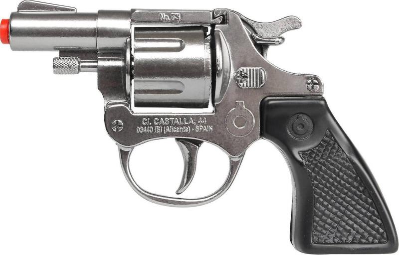 Gonher policejní revolver kovový stříbrný, dětská zbraň na kapslíky, kapslovka na osm ran. Vysoce kvalitní, detailní provedení, realistický vzhled.