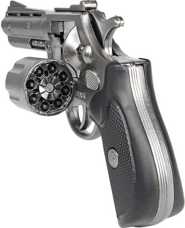 Revolver policejní stříbrný 17cm dětská kovová zbraň kapslovka 8 ran