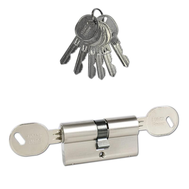 Bezpečnostní 6stavítková vložka s odolností proti odvrtání a nedestruktivní dynamické metodě (tzv. bumping) a s prostupovou spojkou (BSZ) = vložka lze odemknout i při zasunutém klíči z druhé strany.