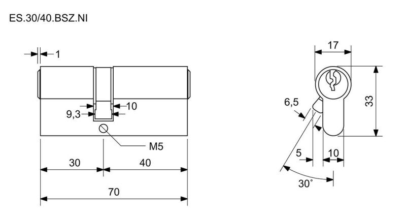Vložka cylindrická 30+40 6 kl. Ni, 3. třída bezpečnosti s prostupovou spojkou RICHTER.Bezpečnostní 6stavítková vložka s prostupovou spojkou "BSZ".