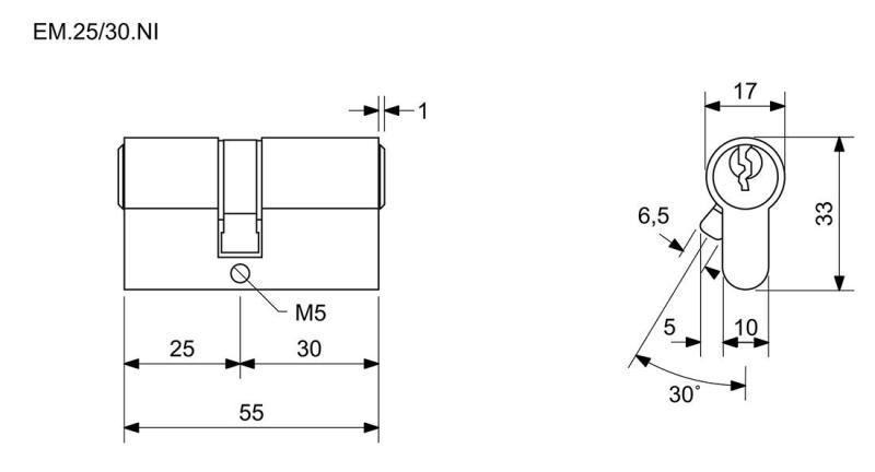 Vložka stavební EURO MINUS 25+30, 3 klíče, Ni, RICHTER.materiál vložky a klíčů: mosaz