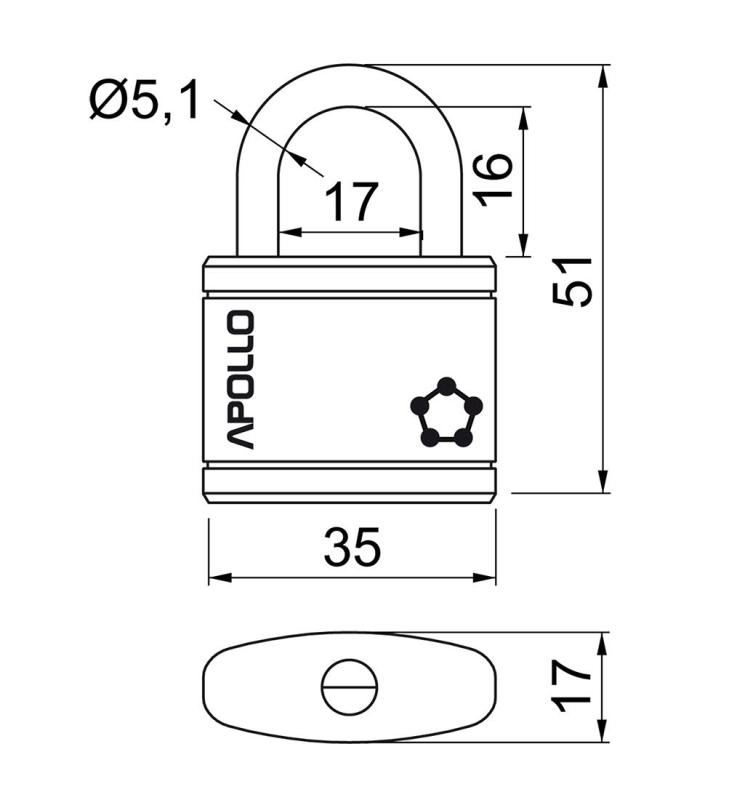 Zámek visací APOLLO 35 3 kl. ČER.Ocelový visací zámek.