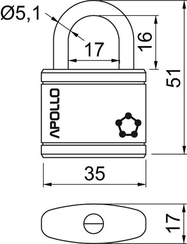 Zámek visací APOLLO 35 3 kl. ČRV.Ocelový visací zámek.