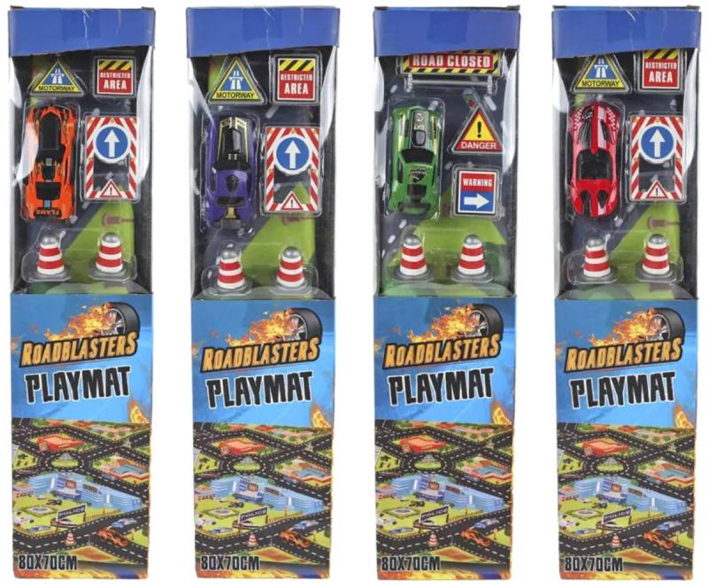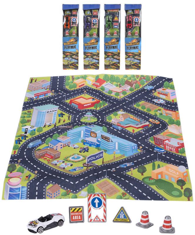 Roadblasters koberec dopravní město 80x70cm set s autem a doplňky 4 druhy