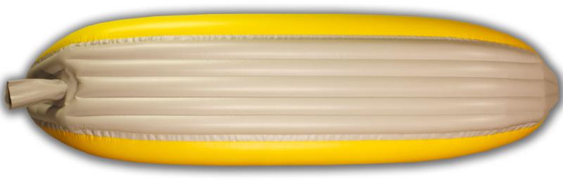 - samovylévání vody zajišťuje rukáv v zadní části kánoe; na klidných vodách jej lze uzavřít a získat tak suchou loď