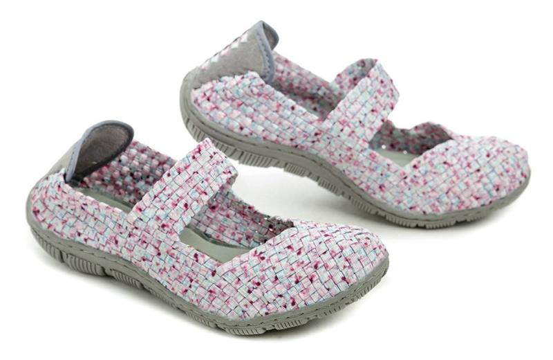 Obuv je vyrobená z textilného materiálu, ktorý je tvorený gumičkami. Tie sú spletené tak, že vytvárajú celistvý materiál, ktorý je príjemný pre chodidlo a súčasne je pružný. Vďaka tejto vlastnosti sa gumičková obuv dokáže prispôsobiť na každé chodidlo. Vnútri obuvi je vlepená textilná stielka z pamäťovej peny s anatomickým tvarovaním. Vložka z pamäťovej peny sa po krátkej dobe vytvaruje podľa tvaru chodidla.