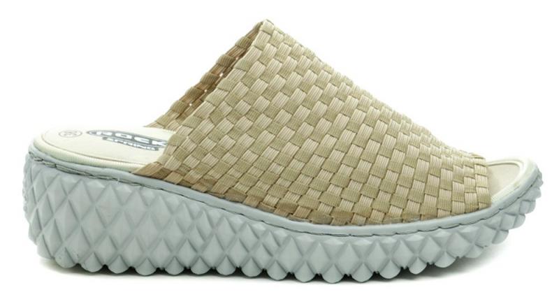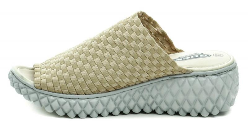 Obuv je vyrobená z textilného materiálu, ktorý je tvorený gumičkami. Tieto sú spletené tak, že vytvárajú veľmi príjemný a pružný materiál, ktorý sa prispôsobí každému chodidlu. Obuv je vhodná aj pre chodidlo s deformitami a výrastkami - ponúkame ju preto tiež v sekcii zdravotná.