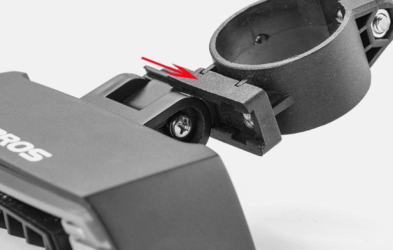 Součástí balení jsou dva kompletní montážní systémy - na sedlovou trubku a pod sedlo. V případě montáže na sedlovku stačí nalepit pěnu, upevnit držák pomocí šroubů a zasunout světlo do vodítka. Druhou možností je montáž pod sedlo - rovněž pomocí šroubů - zajišťující stabilní držení i na nerovném terénu.