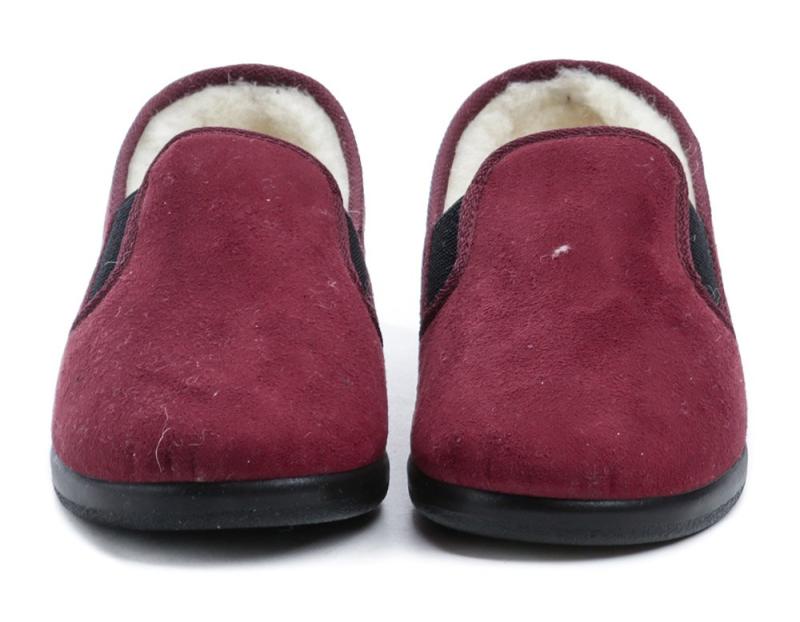 Tento model je ideální pro ženy, které hledají teplou a pohodlnou obuv na doma v zimním období. Díky měkkému materiálu a zateplení poskytuje příjemný pocit a zároveň podporuje správné přizpůsobení chodidlu. Vínová barva dodává obuvi jemný barevný akcent, který nenarušuje celkový vzhled domácího outfitu.