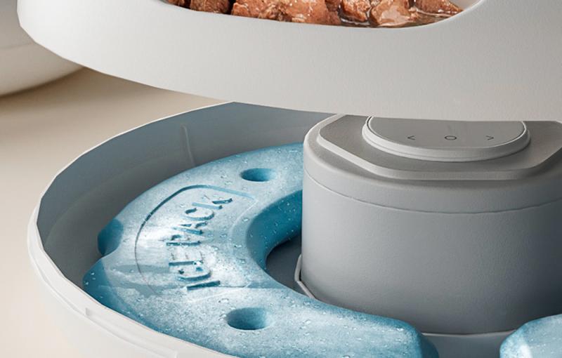 Dávkovač využívá dvě chladicí podložky, které udržují jídlo čerstvé po celý den. Během prvních 8 hodin udržuje dávkovač krmivo při teplotě 0 °C. Po této době stále udržuje dostatečně nízkou skladovací teplotu. Nemusíte se tedy obávat o kvalitu potravin až po dobu 24 hodin. Doporučujeme však, aby masové pokrmy váš mazlíček zkonzumoval do 4 až 8 hodin. Naproti tomu konzervy jsou vhodné ke konzumaci v průběhu celého dne.