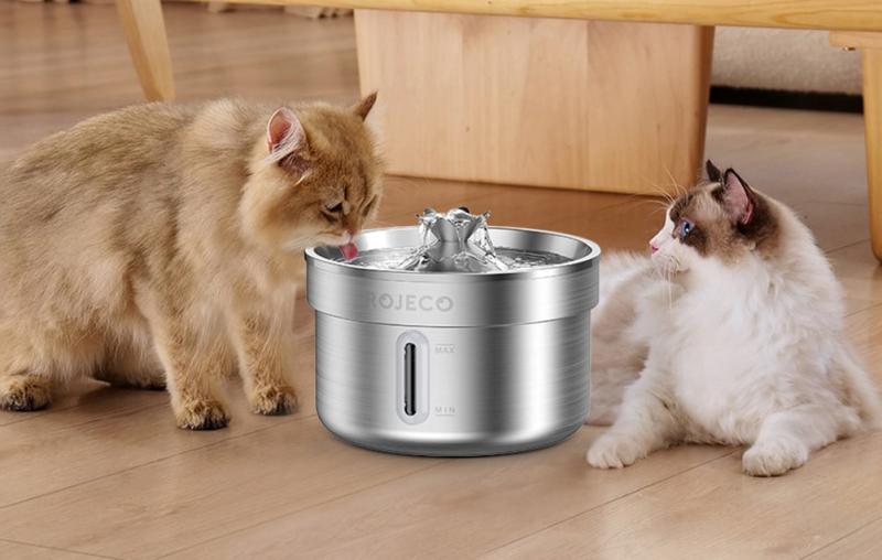 Nyní je péče o zdravou hydrataci vašeho domácího mazlíčka ještě snazší! Fontána ROJECO je moderní a hygienické řešení pro majitele koček a malých a středně velkých psů, které podporuje zdraví vašeho mazlíčka tím, že mu poskytuje stálý přístup k čerstvé vodě bez znečištění. Fontána je pohodlná jak pro domácí mazlíčky, tak pro jejich ošetřovatele. Je vyrobena z odolné nerezové oceli 304, kombinuje elegantní design s funkčností a díky svému objemu 2 litry ji nebudete muset příliš často doplňovat - stačí každých 5-8 dní.