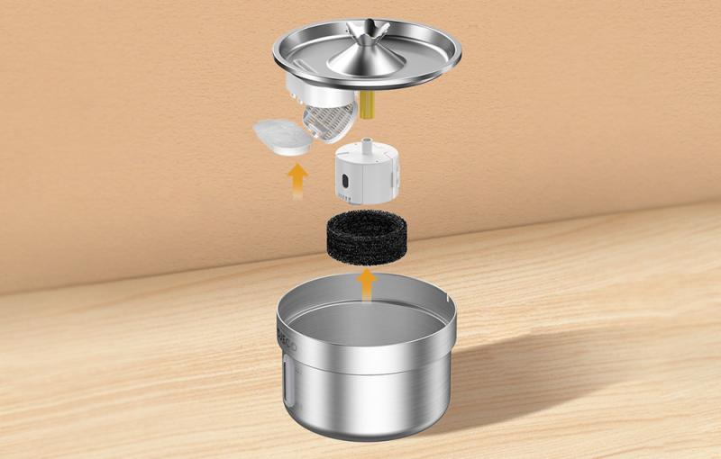 Fontánka je vyrobena z vysoce kvalitní nerezové oceli třídy 304, která je odolná vůči bakteriím a snadno se udržuje v čistotě. Je to mnohem hygieničtější materiál než plast, což pomáhá předcházet kožním problémům, jako je například kočičí akné na bradě. Kromě toho je nerezová ocel trvanlivá a odolná proti poškrábání, což zajišťuje dlouhodobé používání.
