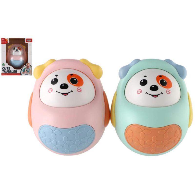 Veselý pejsek, který se nikdy nepřevrátí! Tato roztomilá plastová hračka ve stylu "roly poly" se po postrčení houpe ze strany na stranu a vydává jemné zvuky, které zaujmou pozornost nejmenších dětí.