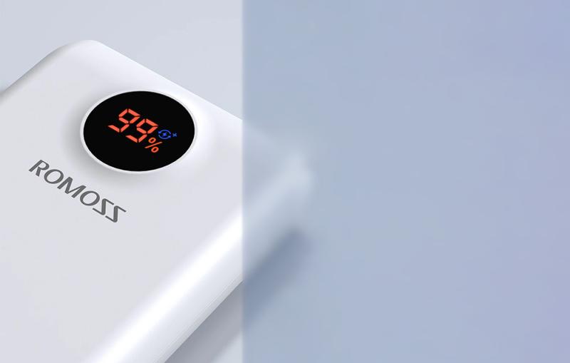 Powerbanka od společnosti Romoss je vybavena digitálním LED displejem, který poskytuje informace o úrovni nabití. To však není vše. Inovativní technologie umožňuje přepínat mezi režimy a zobrazovat informace o napětí a rychlosti nabíjení. Kromě toho se na displeji zobrazí malá ikona, když je nabíječka v režimu rychlého nabíjení.